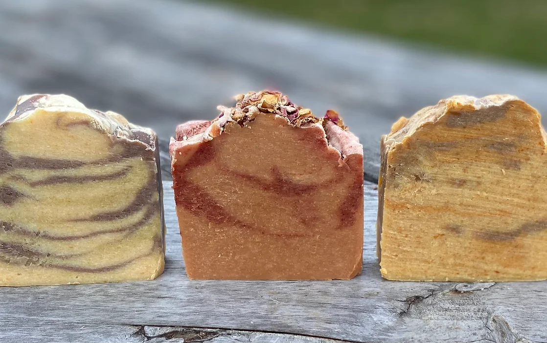 Chevre, feta, and soap with our goat's milk,  lotions and candles from beeswax and a beautiful rainbow of eggs from our layers